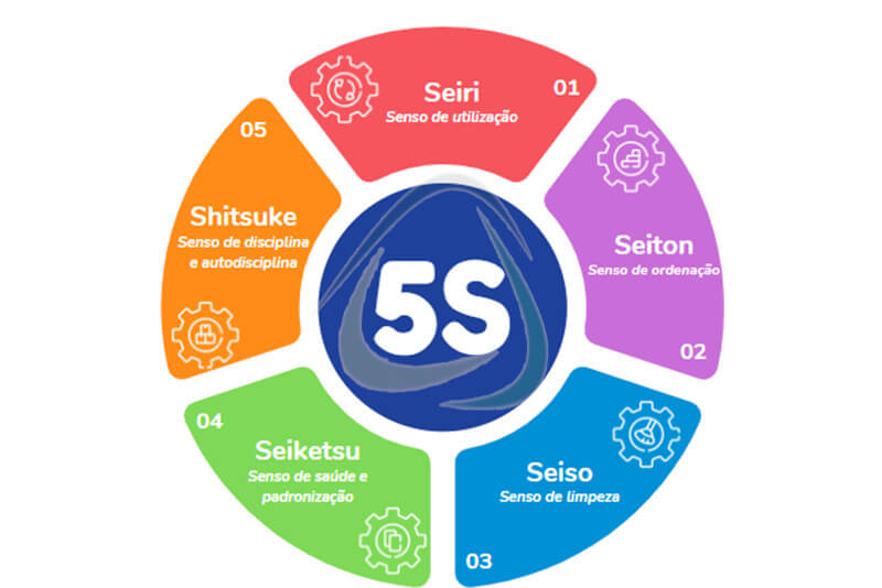 São eles: Seiri (senso de utilização), Seiton (senso de ordenação), Seiso (senso de limpeza), Seiketsu (senso de padronização) e Shitsuke (senso de disciplina).